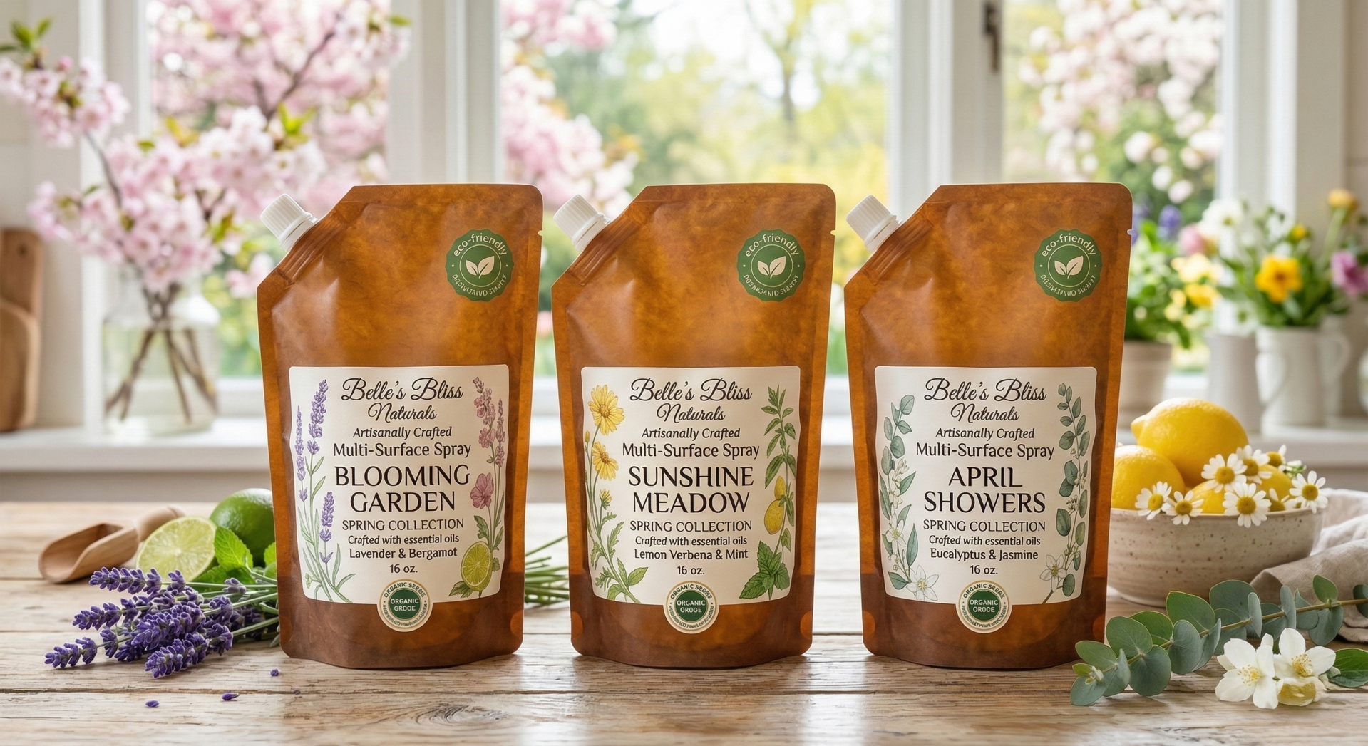 Bring the freshness of a sun-drenched garden indoors with Belle’s Bliss Naturals’ Spring Collection. Crafted with artisanal care and formulated with nothing but clean, green, botanical power, these multi-surface sprays are designed to transform your cleaning routine into a moments of pure bliss. Our unique formulas are Artisanally Crafted, Vegan, Cruelty-Free, and carry our Organic Certified Natural Ingredients Badge, ensuring they are gentle enough for your family and tough enough for the grimiest surfaces.