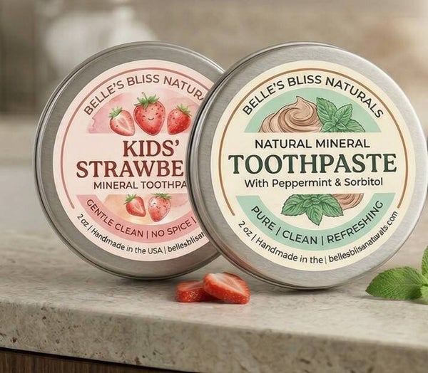 Introducing Belle's Bliss Naturals, our new range of all-natural mineral toothpastes that are gentle, effective, and free from all the bad stuff. We believe in the power of nature to provide a truly clean and refreshing experience, and we can't wait for you to try them.